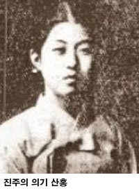 진주기생 산홍(山紅)이 재주와 미모가 뛰어 났다. 이지용이 천금을 주고 첩으로 삼으려 했다. 평소 의기(義妓) 논개(論介)를 흠모하던 산홍은 단칼로 거절했다.