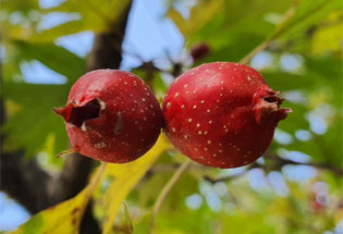 카테킨과 안토시아닌 등 폴리페놀류와 비타민류, 미네랄류가 풍부한 산사 열매는 추석 전후(9~10월)로 빨갛게 익습니다. 새콤한 맛과 산미도가 높아 차와 주스, 술과 잘 어울리지요. 특히 음료로 마실 때 알레르기를 억제하는 효과가 뛰어난 것으로 전해집니다. 음식을 먹고 체했거나 복통, 구토, 위산과다,만성장염을 치료하는데도 널리 쓰였지요. 한방에서는 ‘혈의 흐름을 돕고 어혈을 없애준다’ 하여 혈액순환을 개선하거나 강심제, 혈압강하제로 사용했습니다.