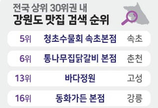 ‘미식의 시대’, 식도락이 주요 여행목적으로 주목받는 가운데 강원도내 맛집이 전국 상위권에 대거 포진, 국내 대표 관광지로서의 위상을 다시 한번 입증했습니다. 특히 속초·강릉 등 동해안 ...